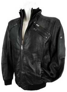 Bruno Banani Giacca In Pelle Uomo Vera Nappa Di Agnello nera NUOVO 8019
