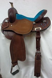 Cactus Saddlery 15" Turquoise Barrel Saddle #552916 Full Quarter Horse Bar