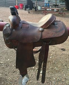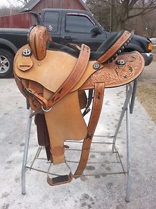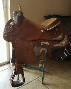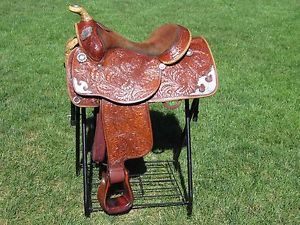 Lamb reining pleasure saddle 15.5 wide bars leather silver and breastcollar