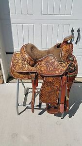 15" WESTERN LEATHER HORSE COWGIRL BARREL RACING PLEASURE TRAIL SADDLE TACK
