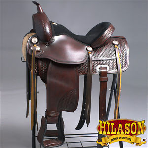 TO105RO HILASON TREELESS WESTERN LEATHER TRAIL BARREL RACING SADDLE 15 16 17 18