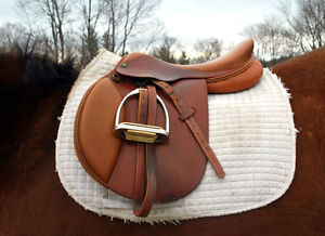 16.5" L'APOGEE French close contact jumping saddle- mint condition! blocks