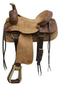 16" BROWN ROUGH OUT LEATHER WESTERN WADE ROPING RANCH COWBOY HORSE SADDLE TACK