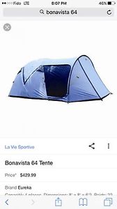 EUREKA Bonavista 64 600$ Tent , Vestibule 8x8x6.2 Tall Fits 3 30 Inch, 5 -6 Ppl