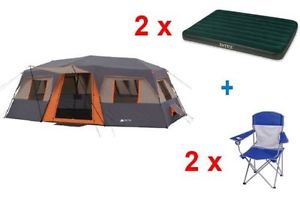 ozark trail 12-person 3-room instant cabin tent Buddle 2 Air Mattress N 4 Chairs