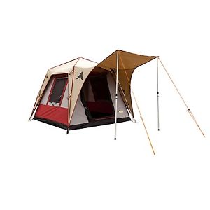 Pine Deluxe 6 Person Turbo Tent, Canvas, Pop up, Waterproof, 4 Season, Tan, Red
